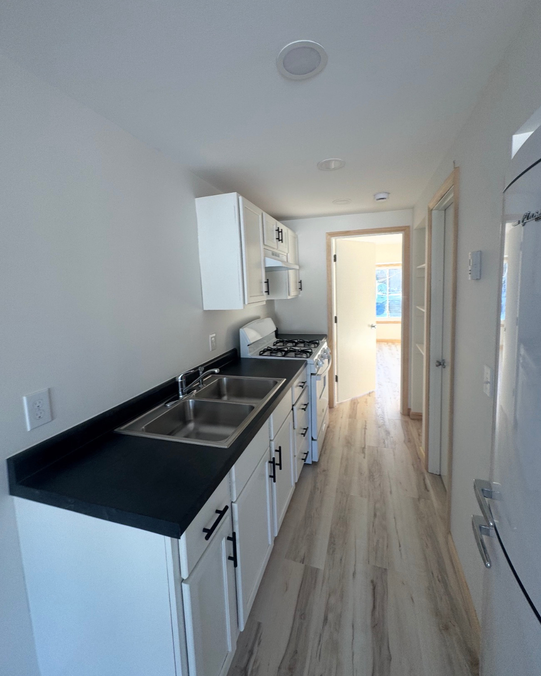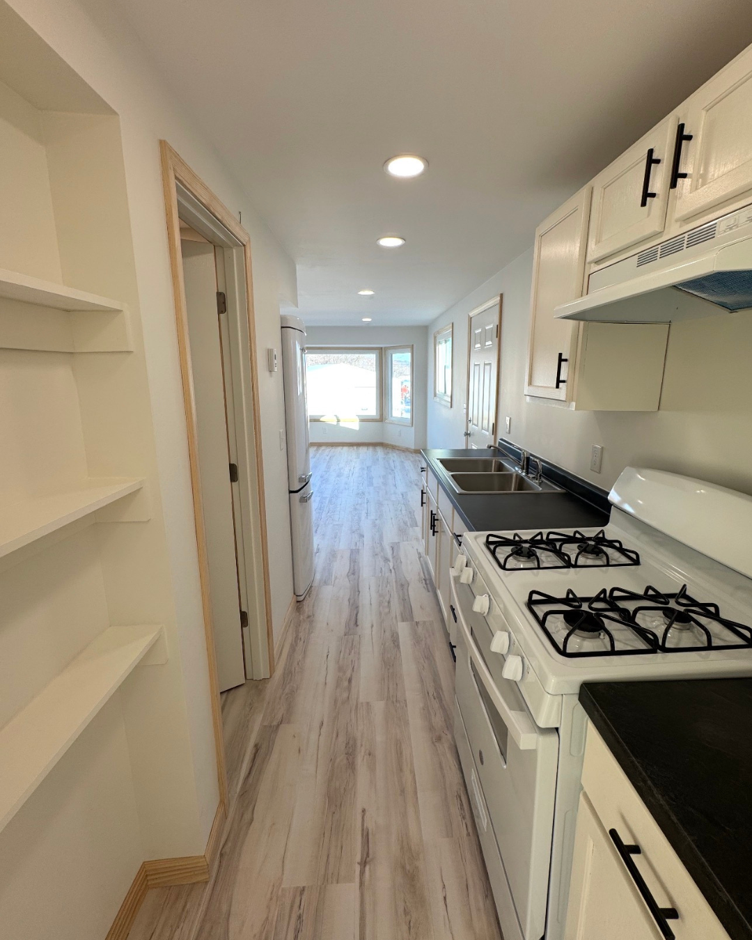 The finished result is a bright, modern apartment with durable flooring, updated finishes, and a fresh design that feels open, comfortable, and move-in ready.